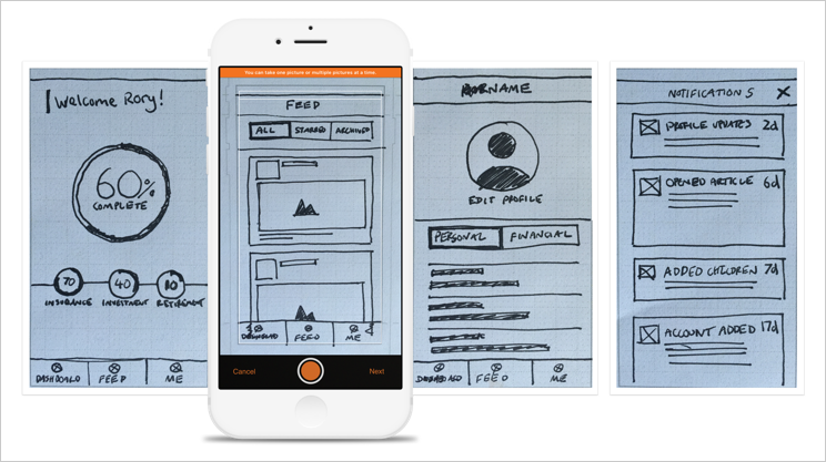 First, I created quick thumbnail sketches of screens and potential screen flows based on all the insights we received during the early phases of the sprint. After getting some general feedback on the flows at a high level I moved onto creating more detailed screens which would then be translated to POP App using the downloadable template on their website.
