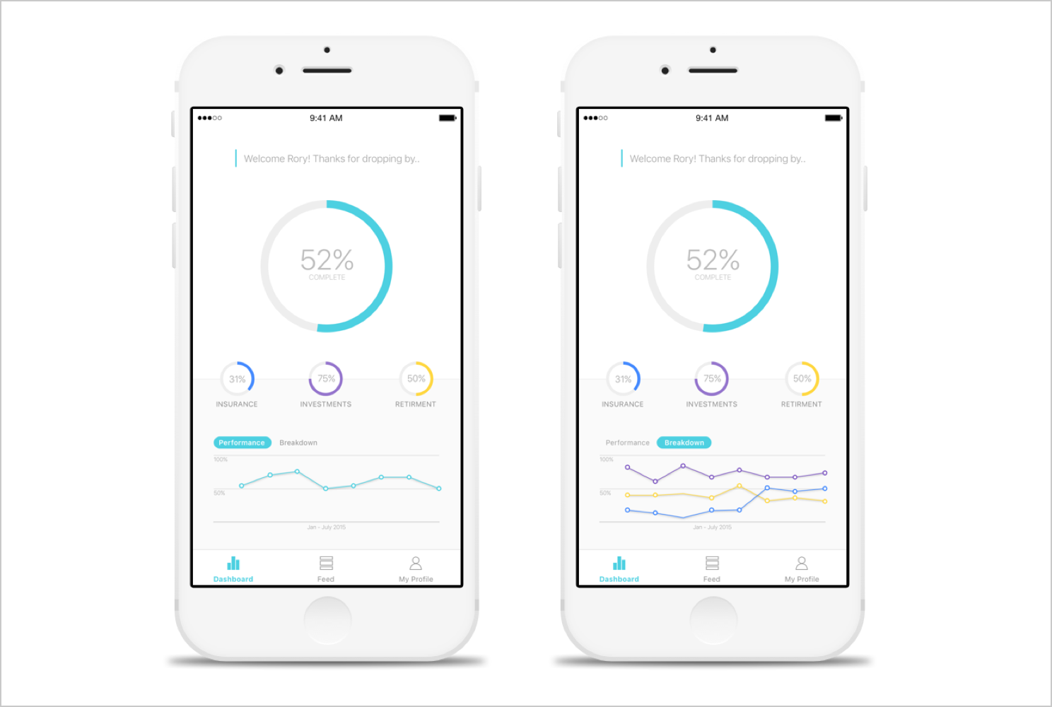 After several usability studies, I was able to quickly iterate on our designs and make valuable tweaks. This lead to some of the screens you see below that were presented to leadership about what the future of Transamerica could be.
